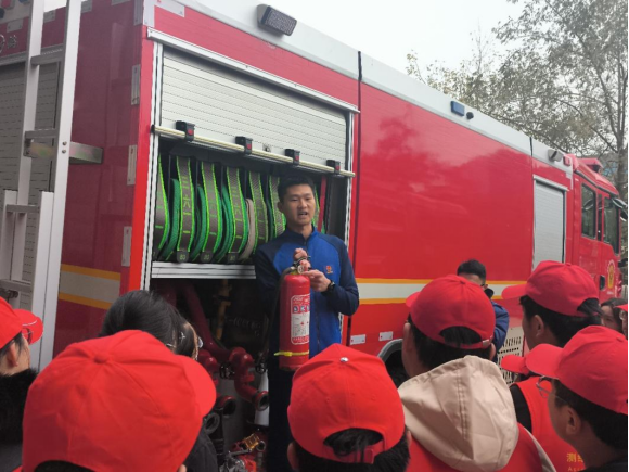 (消防员为大家讲解灭火器)