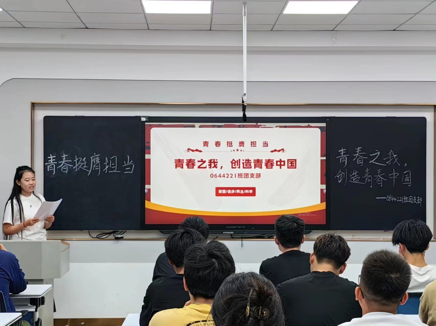 (通讯员:张雪梅 李尚远)为学习贯彻习近平总书记关于青年工作的重要思想,把牢新时代青年工作的主题,引导团员和青年了解党领导下的中国青年运动百年历史。beat365亚洲体育官方网站0644221班于5月21日在五号楼B107开展“青春挺膺担当--青春之我 创造青春中国”主题团日活动,团学干部柴洁和beat365亚洲体育官方网站团委书记宋自影参会。