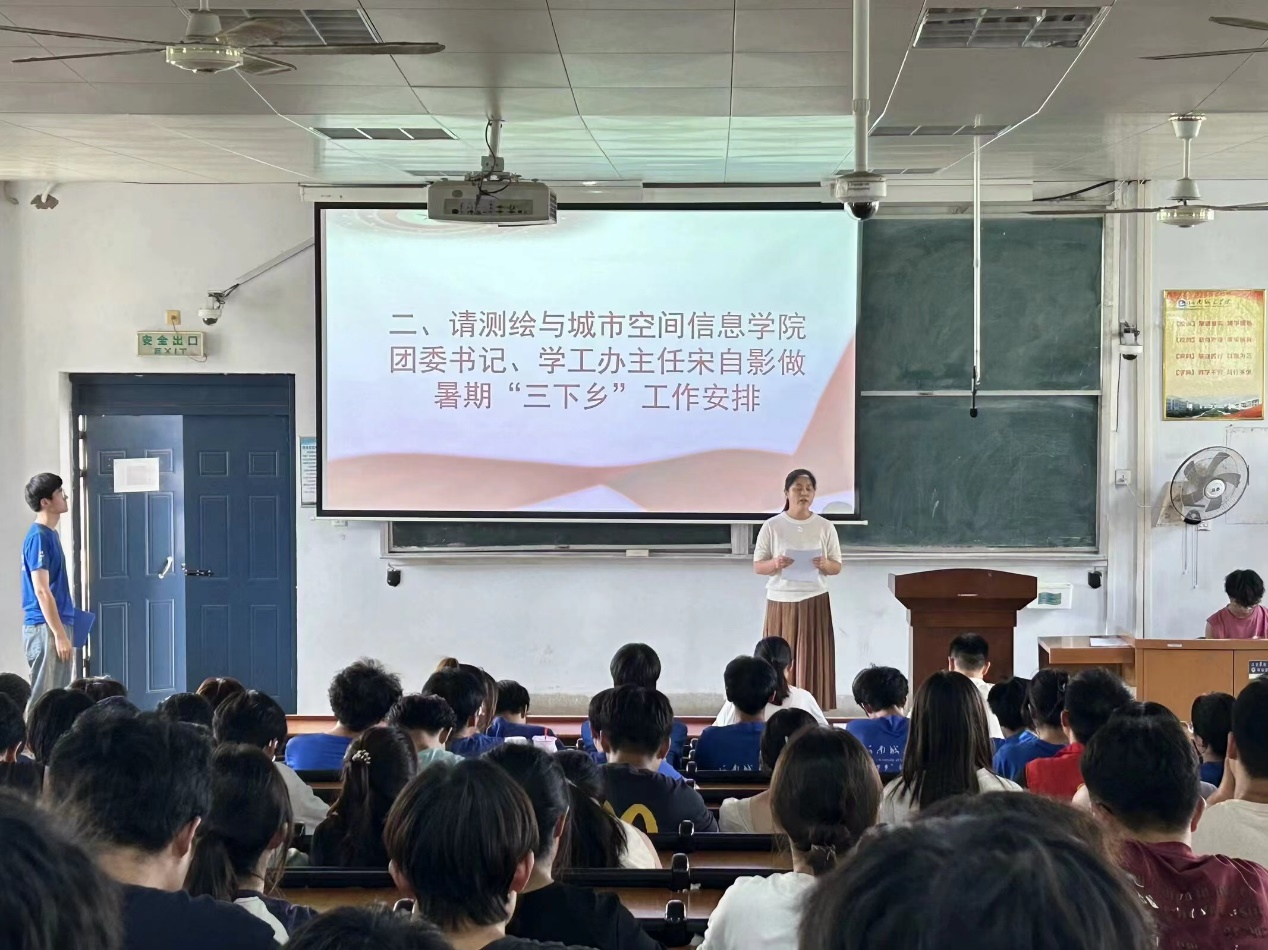 (通讯员:练文欣)为深入学习贯彻习近平新时代中国特色社会主义思想和党的二十大精神,深入推进乡村振兴战略。beat365亚洲体育官方网站于6月26日下午3点开展“2024年暑期三下乡社会实践活动”启动仪式,测绘与城市空间信息公司党委副书记卫柳艳,团委书记、学工办主任宋自影,辅导员郭军学以及员工代表参加此次启动仪式。