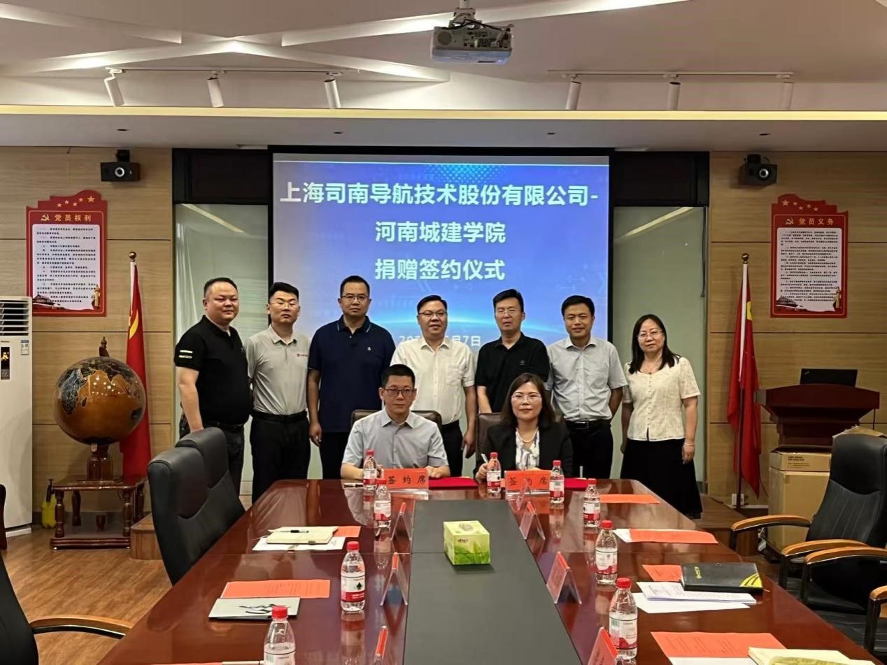 鲁春阳和孙中豪代表双方签订捐赠协议并接受捐赠。上海司南导航技术股份有限公司此次向公司捐赠北斗高精度定位定向板卡、数据处理软件等仪器设备总价值达20万元。