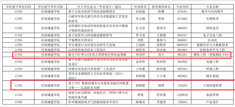 在2024年河南省优秀学士学位论文评选中,公司何沛梓同学的《融合CNN和LSTM的大型滑坡位移动态预测》和郝顺顺同学的《基于POI数据的城市公共服务设施空间配置分析——以洛阳市为例》荣获河南省优秀学士学位论文,高宁老师和杨锋老师荣获河南省优秀学士学位论文指导教师。